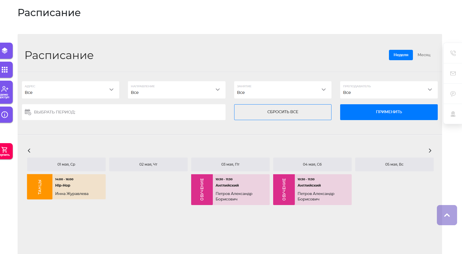 Расписание